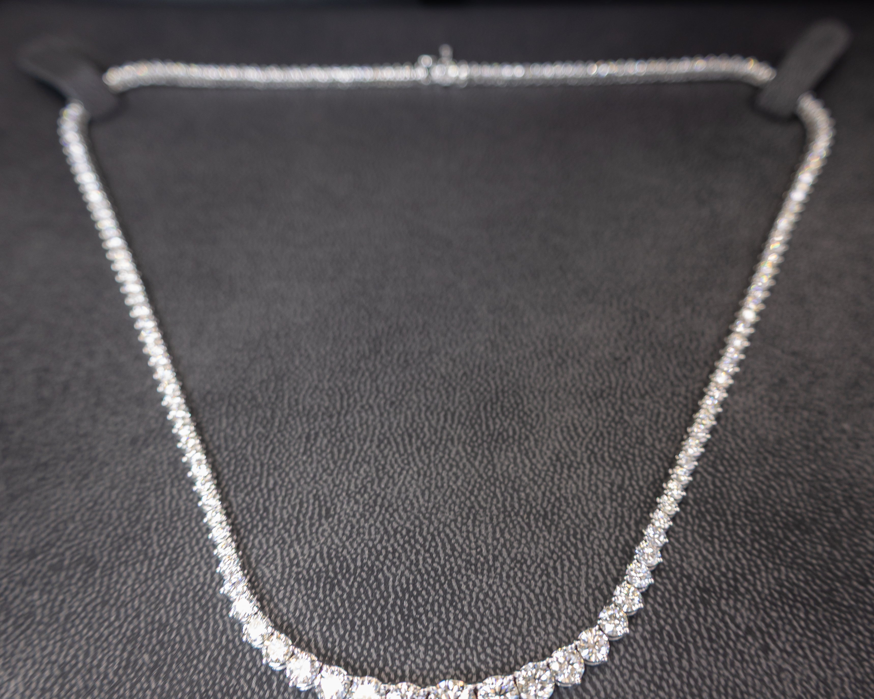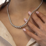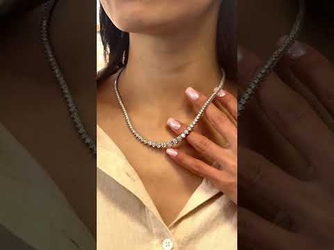 13.38 Carats Natural Diamond Graduated Riviera Necklace in 14K White Gold – 161 Stones, 17.25”