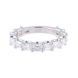 Delicate yet substantial, diamonds ranging from 3.2–3.3 x 2.4–2.5 mm glisten in refined U-prong settings, allowing for optimal sparkle while maintaining a clean, minimal profile. This band effortlessly pairs with an engagement ring or shines solo as a statement of modern romance.