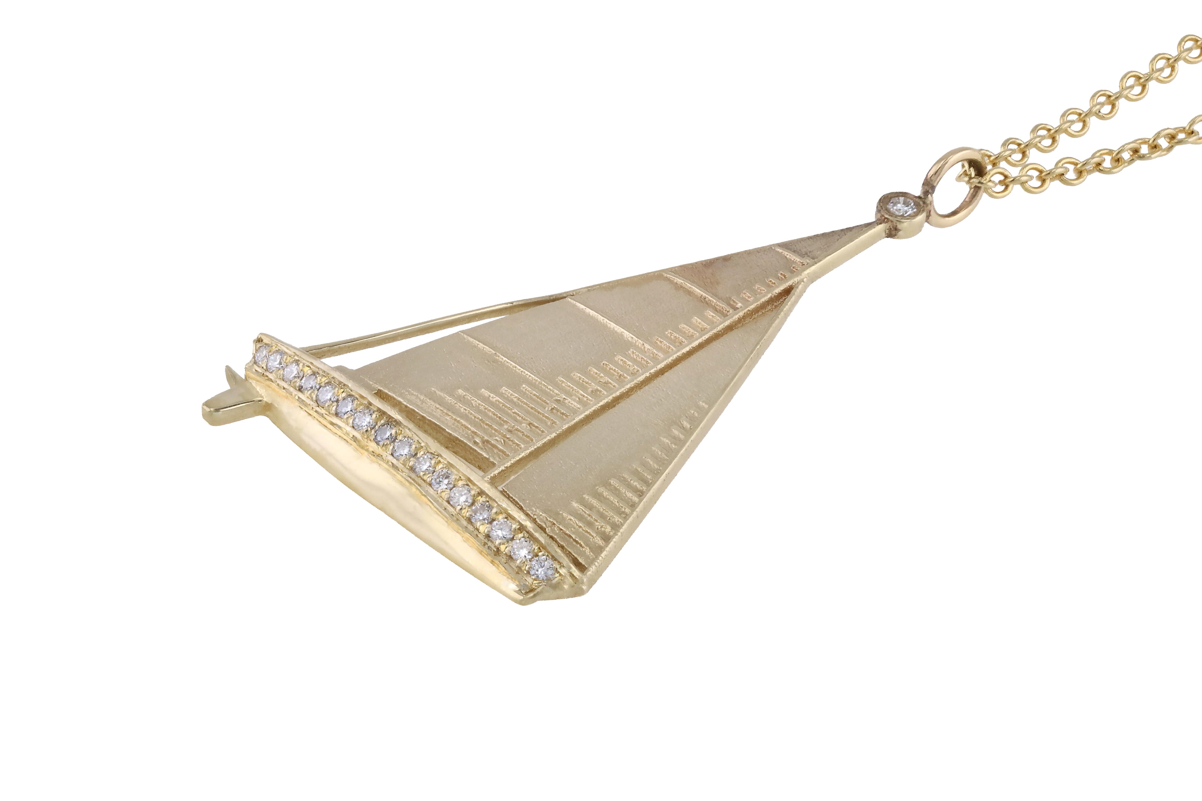 Set sail in style with this exquisite 14K yellow gold sailboat pendant — a tribute to adventure, freedom, and timeless elegance. Designed by master jeweler Dan Moran, this pendant captures the spirit of the open sea with a touch of brilliance that glimmers like sunlight on the water.