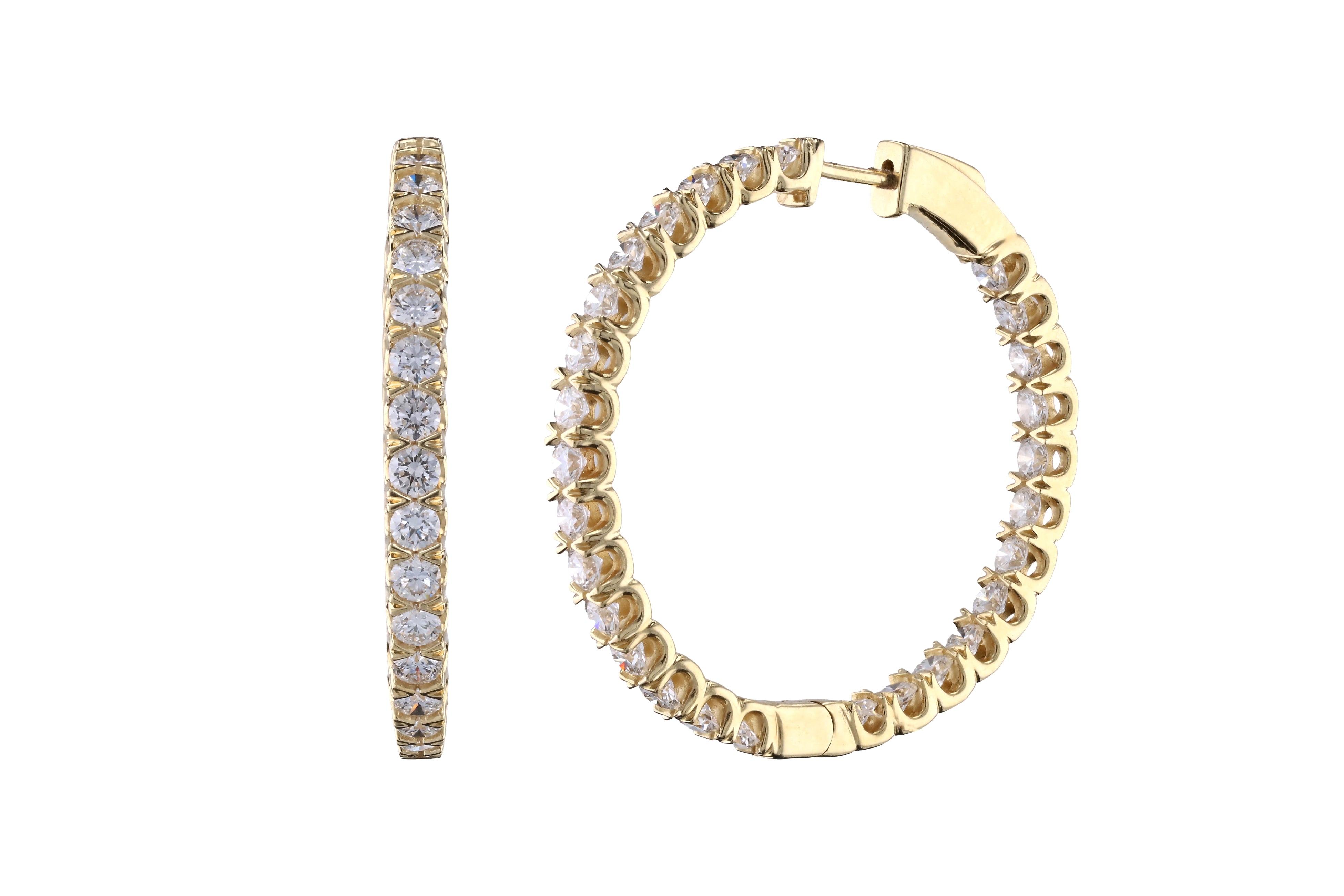 Keywords: lab-grown diamond hoops, yellow gold diamond earrings, 5 carat diamond hoops, round brilliant diamond hoops, fine jewelry earrings