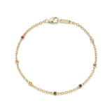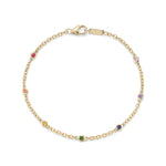 14K Yellow Gold 7 Station Rainbow Sapphire Bezel Bracelet