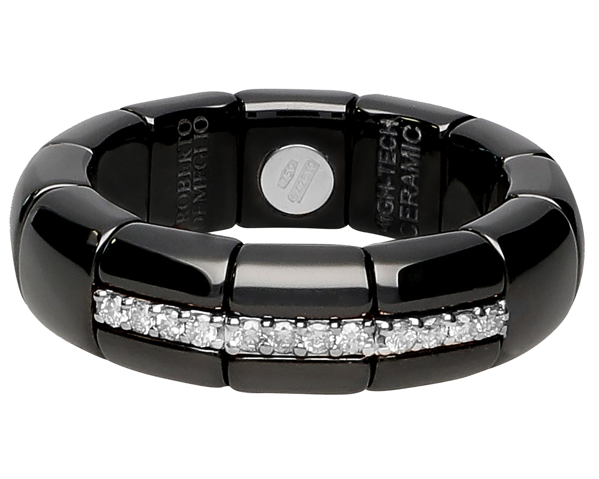 Keywords: black ceramic diamond ring, 18K white gold men’s ring, black ring with diamonds, modern diamond band, men’s luxury wedding band, black and white gold ring, contemporary fine jewelry