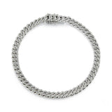 14K White Gold Cuban Link with Pave Diamond Bracelet - 7 inch length