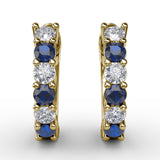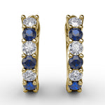 Shared Prong Sapphire And Diamond Hoop Earrings