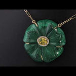 Hand-carved malachite flower pendant with striking natural banding