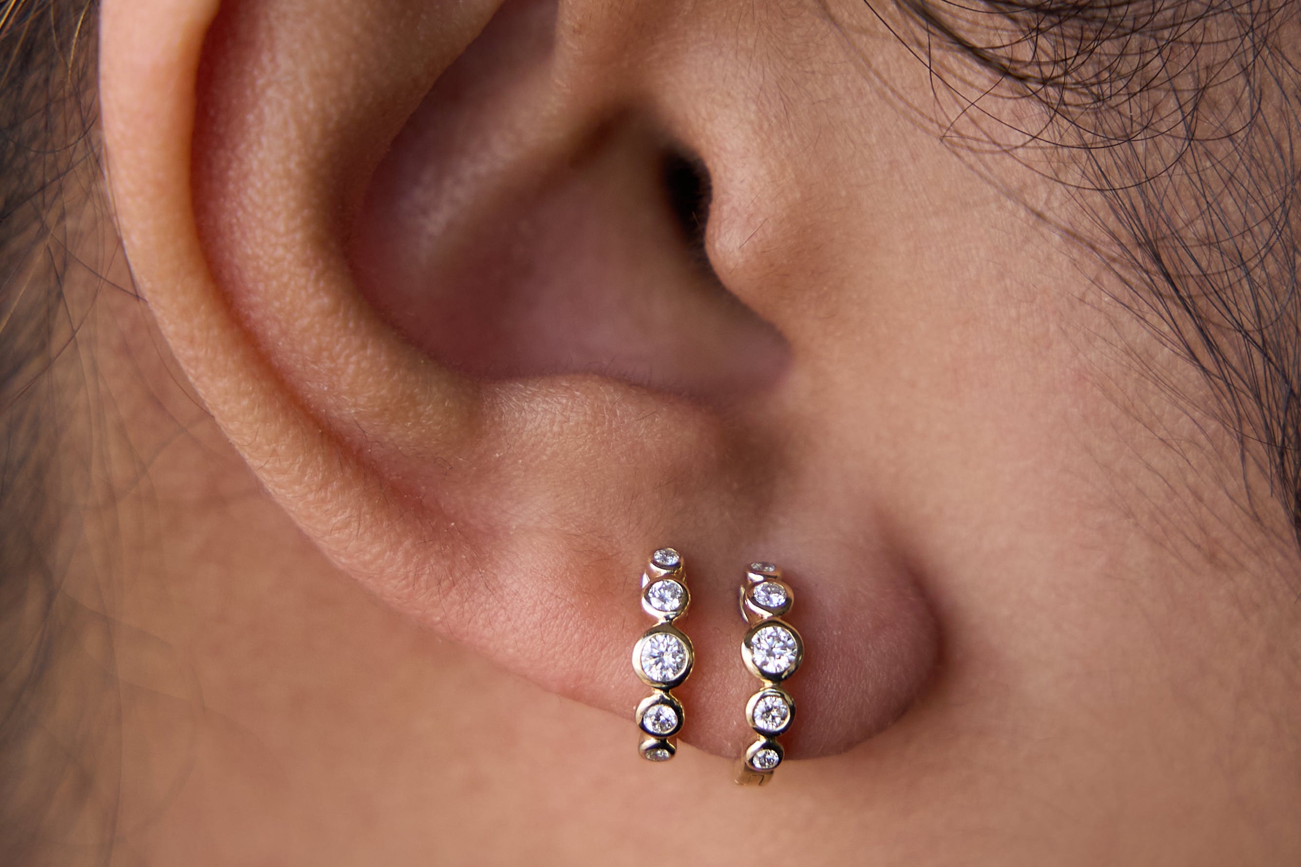 Graduated Diamond Bezel Huggie Earrings - Yellow Gold