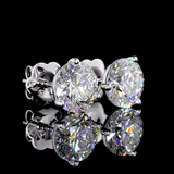 These exceptional, custom-made lab-grown diamond studs feature two perfectly matched, E+ color, VS clarity, round diamonds. Available in 14K white or yellow gold with classic three or four-prong settings.