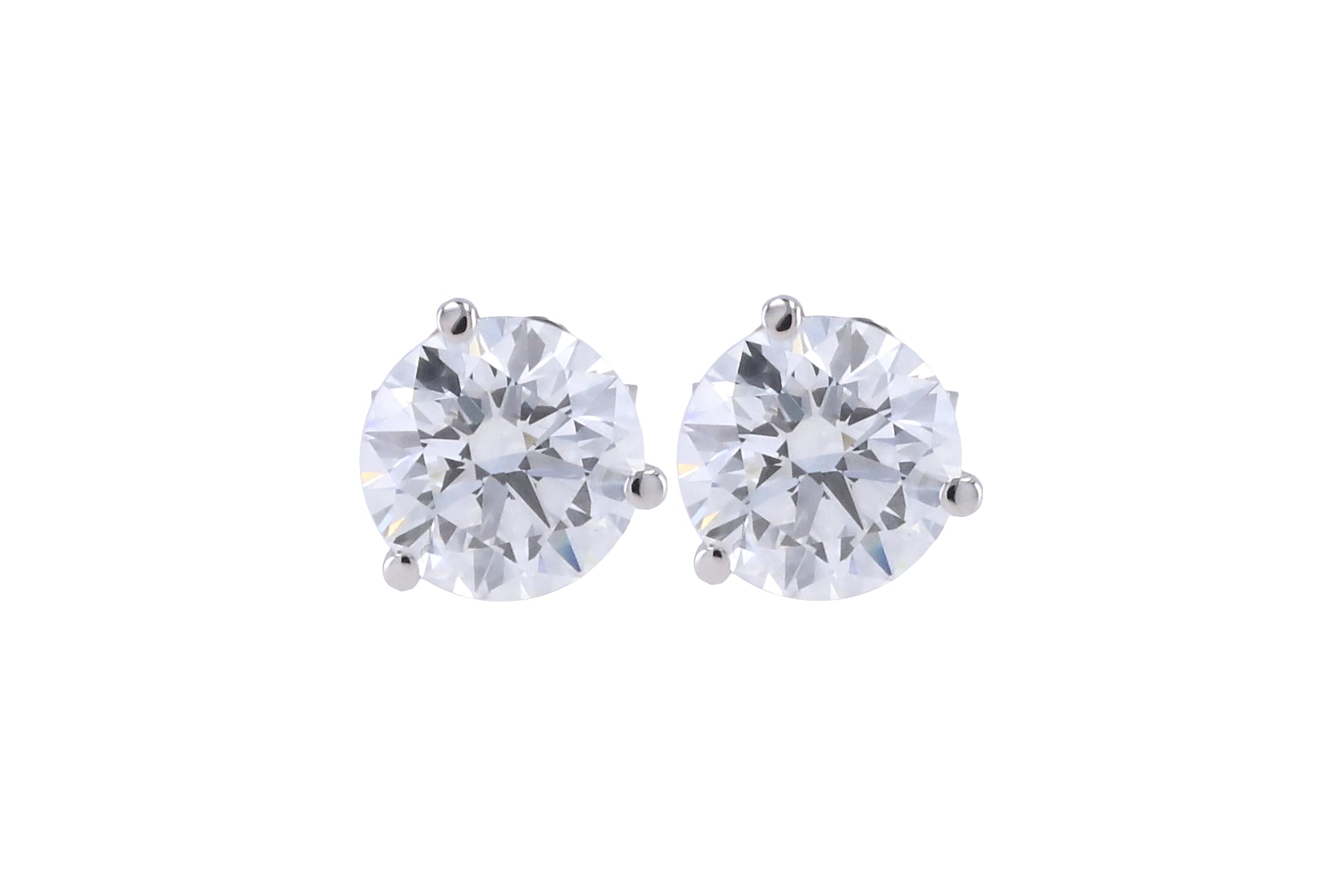 These exceptional, custom-made lab-grown diamond studs feature two perfectly matched, D color, VVS clarity, ideal-cut round diamonds. Available in 14K white gold with classic three-prong settings.