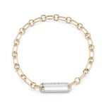 14K Two-Tone Paperclip Bracelet with Pavé Diamond Clasp – 7"