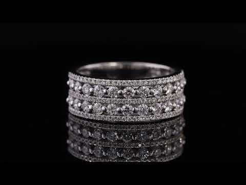 14K White Gold Round Diamonds with Pave Diamond Borders Band - 1.26 Total Carats