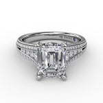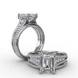 Contemporary Emerald Cut Diamond Solitaire Engagement Ring With Triple-Row Diamond Band