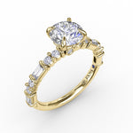 Contemporary Diamond Solitaire Engagement Ring With Baguettes and Round Diamond Accents