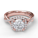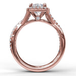 Cushion Halo With Diamond And Gold Twist Engagement Ring