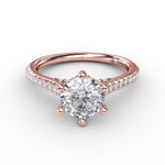 Six - Prong Round Diamond Engagement Ring with 1/2 Diamond Band