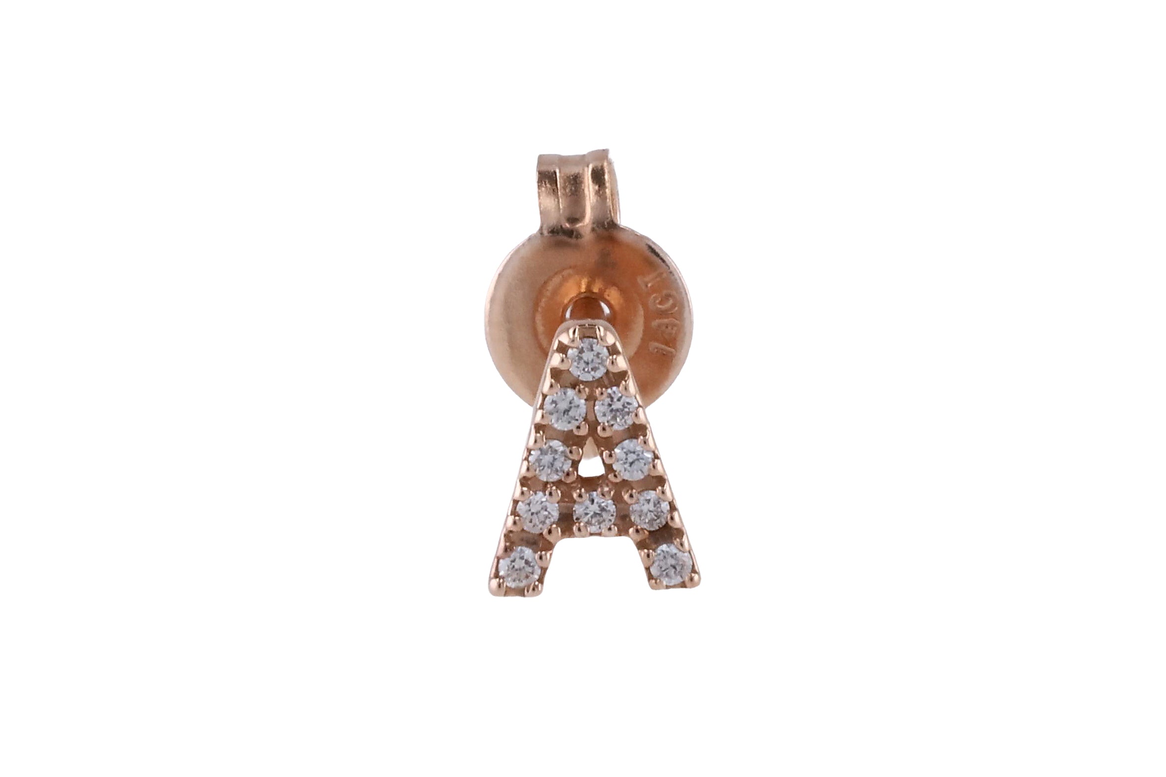 Single Initial Diamond Stud Earring in 14K Gold