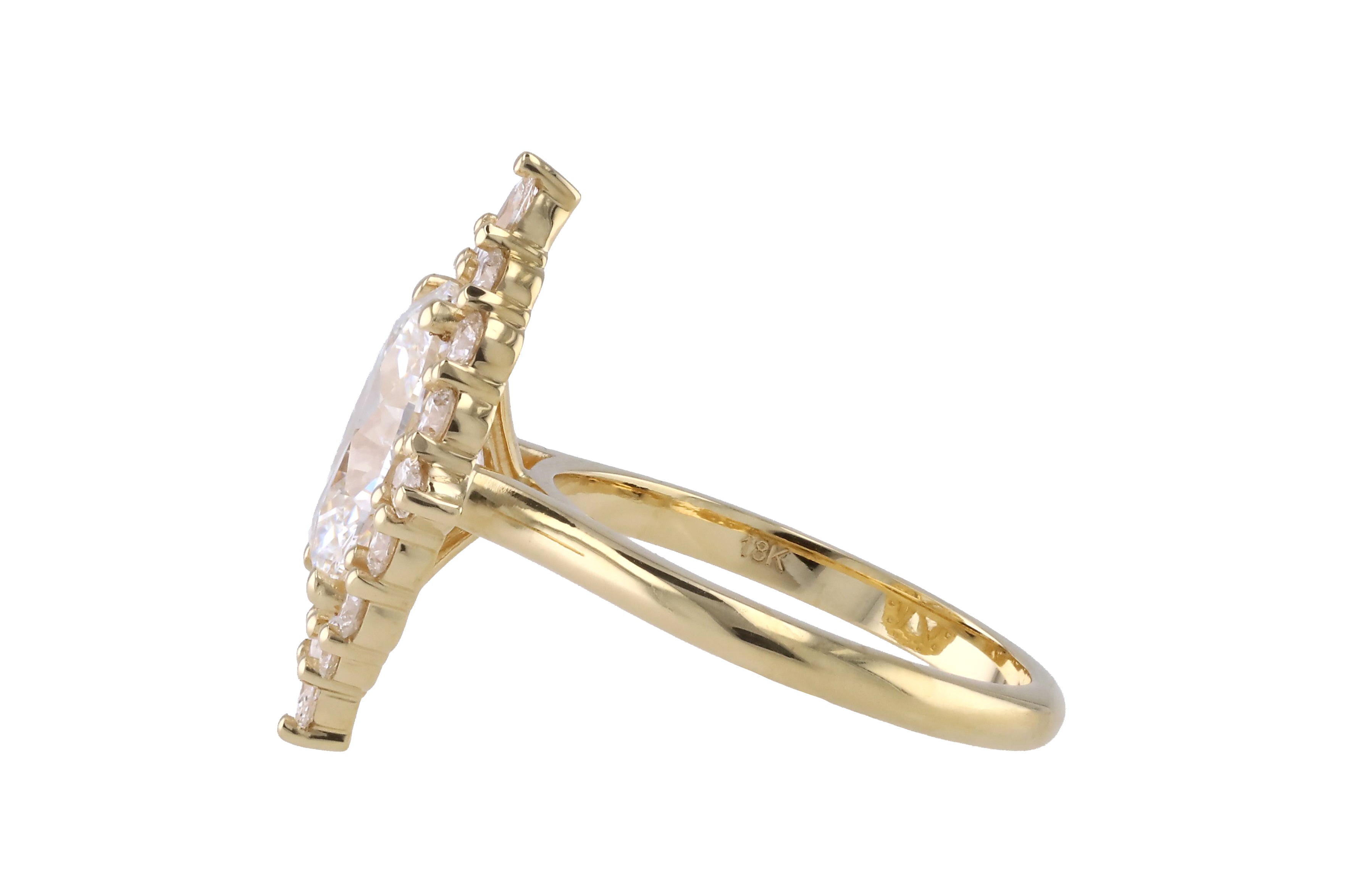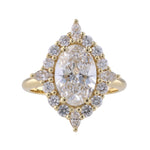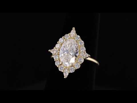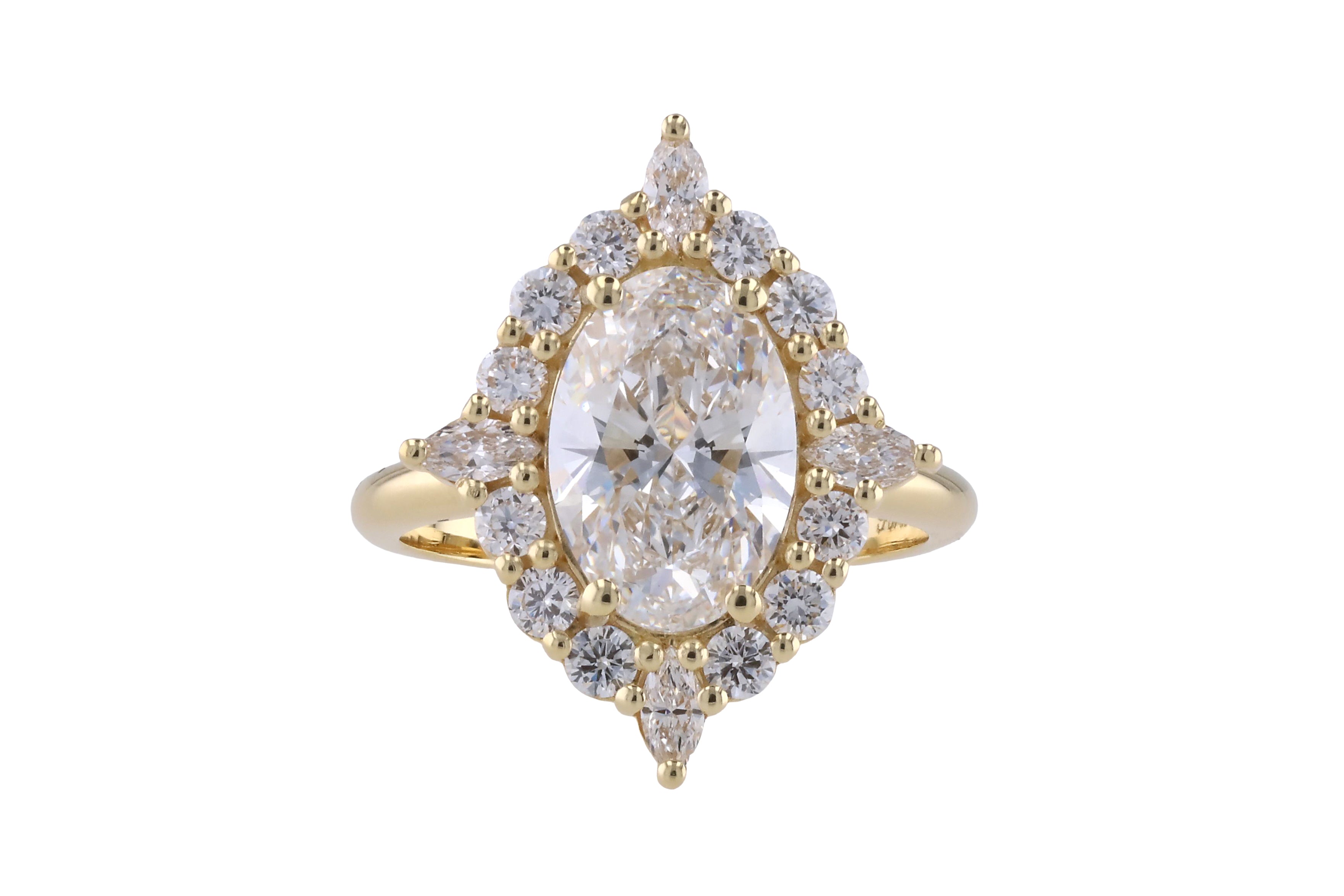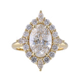 2.50 Carat Oval Diamond Engagement Ring with Sunburst Halo in 18K Gold