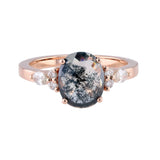 A cosmic love deserves a ring as rare as your story. The Galaxy Engagement Ring features a one-of-a-kind 1.20 carat salt & pepper rose-cut oval diamond—each inclusion like a star in its own sky. Set with four delicate ball prongs in warm 14K rose gold and flanked by sparkling white diamond side-stones, this ring is a celestial balance of contrast and charm.