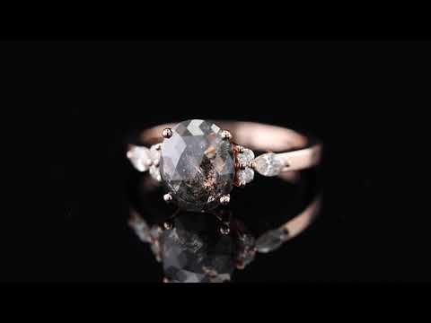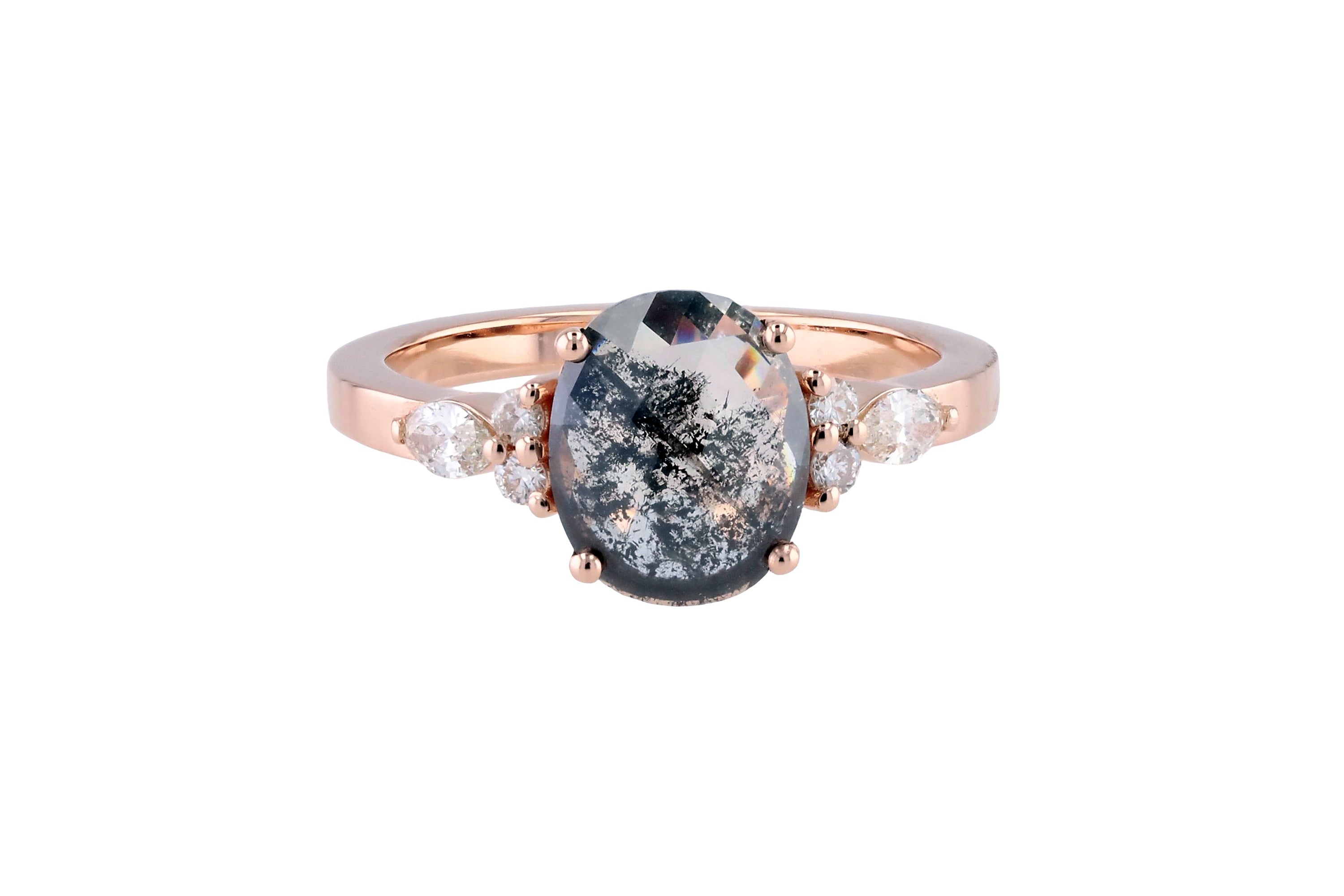 The Galaxy Engagement Ring (Salt & Pepper Rose Cut OvalDiamond)